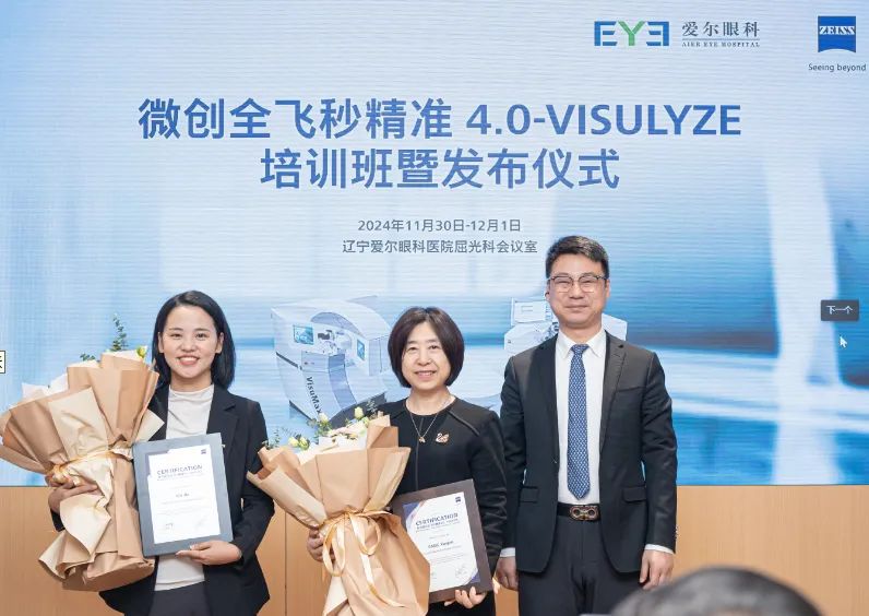 在此次微创全飞秒精准4.0-VISULYZE系统发布仪式上,辽宁爱尔眼科医院方学军教授和刘佳医生分别获得“蔡司微创全飞秒精准4.0-VISULYZE精准屈光专家(医生)”,“蔡司微创全飞秒精准4.0-VISULYZE 精准屈光专家(数据分析师)”的认证。此次认证代表了德国蔡司对全飞秒手术医师专业性的高度认证,只有对微创全飞秒精准4.0-VISULYZE的操作熟练度和手术量都达到既定要求的医生,并综合考虑其手术患者术后恢复效果等方面,经过蔡司公司德国总部严格审核后才会给予认证。此认证肯定了辽宁爱尔眼科医院在全飞秒手术领域的专业性,也再次展现了辽宁爱尔屈光手术专科在近视手术领域的卓越实力。