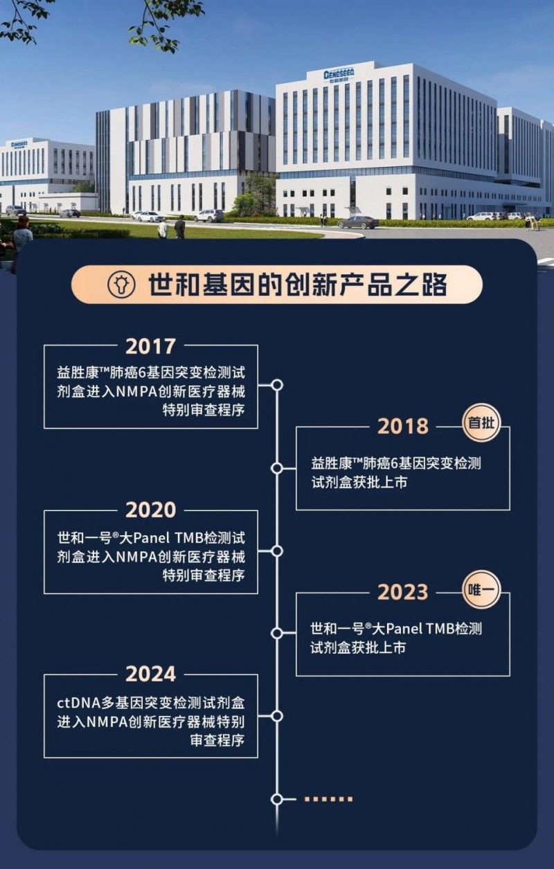 值得一提的事,该试剂盒是世和基因第三款进入创新医疗器械特别审查程序的产品。此前,世和基因已有两款NGS检测试剂盒——世和一号®NGS大Panel TMB检测试剂盒(国械注准20233401452)和益胜康™EGFR/ALK/ROS1/BRAF/KRAS/HER2基因突变检测试剂盒(国械注准20183400408)通过创新医疗器械审查程序批准上市。