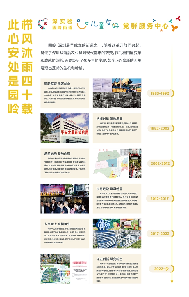聚焦破解老城区公共服务空间紧缺的问题,园岭街道凝聚街校社共建合力,通过党建联建,以4300平方米的深圳实验综合楼为合作载体,打造全国首个以儿童友好为主题的党群服务中心,成为园岭建街41年以来首个街道级党群服务中心,,为辖区以至全市青少年提供了一个充满活力的党群公益活动平台。