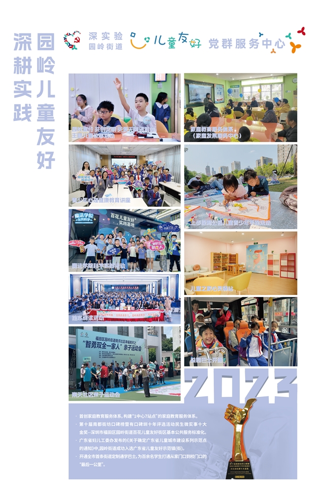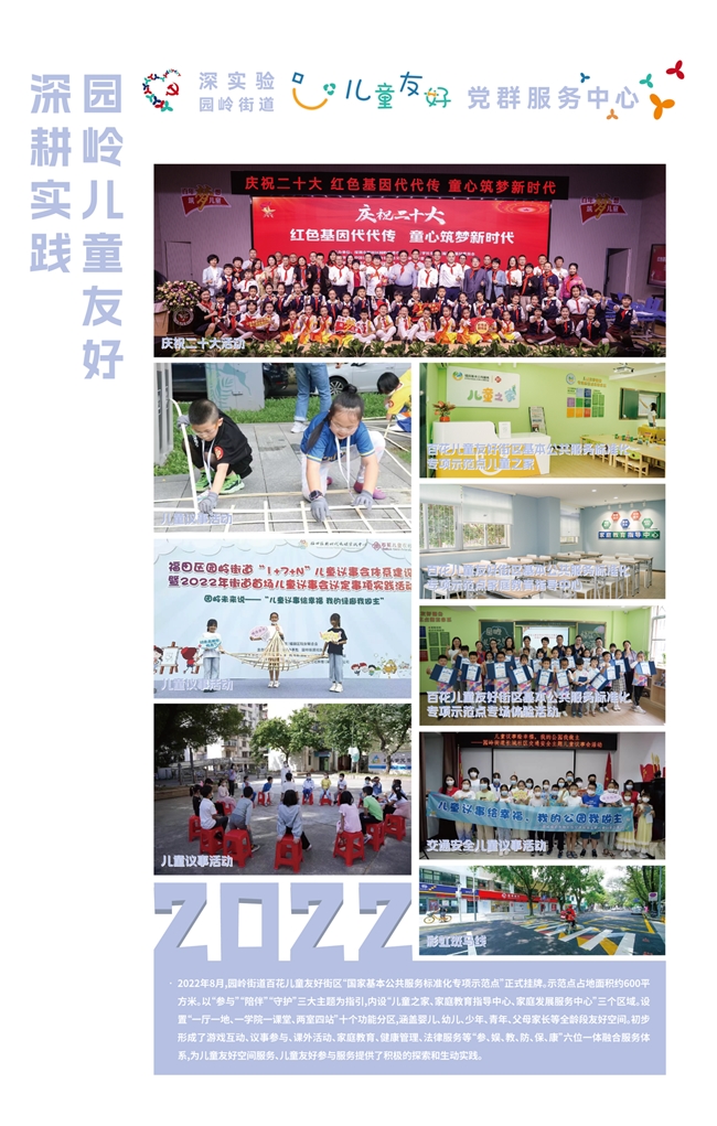 园岭街道围绕儿童友好工作进行了完善的规划,先行打造了深圳市第一个儿童友好街区——百花儿童友好街区,为深圳建设儿童友好城市提供了“园岭样本”。