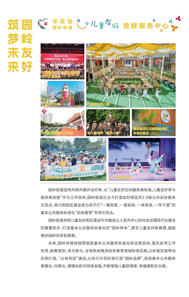 关爱儿童成长,就是关心祖国的未来。园岭儿童友好建设对标国际一流,从推进儿童友好国际化街区建设出发,将儿童友好的理念和元素向街道各个层面和全区域延伸扩展,创建了儿童友好城市建设的“深圳样本”,是深圳建设儿童友好城市的生动实践。