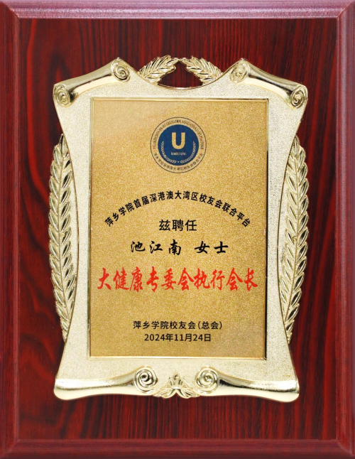 会上,三也生物董事长池江南荣任“萍乡学院深圳校友会第二届理事会执行会长”以及“大健康专委会执行会长”。这一任命不仅是对池江南女士个人能力和行业贡献的认可,也是对其领导力的高度肯定。作为大健康产业的领军人物,池江南女士将带领校友会进一步促进校友之间的交流合作,推动大健康领域的发展,为湾区经济贡献力量。