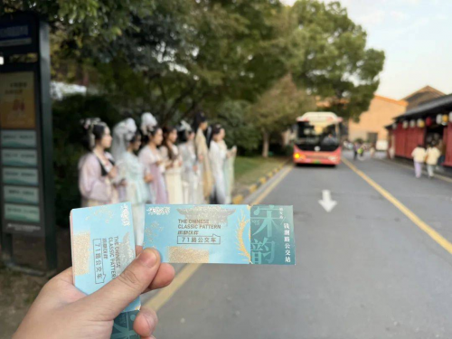 金秋时节,一辆辆装饰着宋代纹样的特色公交巴士悄然穿梭在了杭州的大街小巷,它们不仅是交通工具,更是传播宋韵文化的重要窗口。换装后的公交巴士披上了绛红与青绿的华服,仿佛霞光映照流云,又似雨后初霁的天青,完美复刻了宋代那份含蓄而高雅的美学意境,让人恍若置身千年前的繁华盛世,体验一场说走就走的文化之旅。