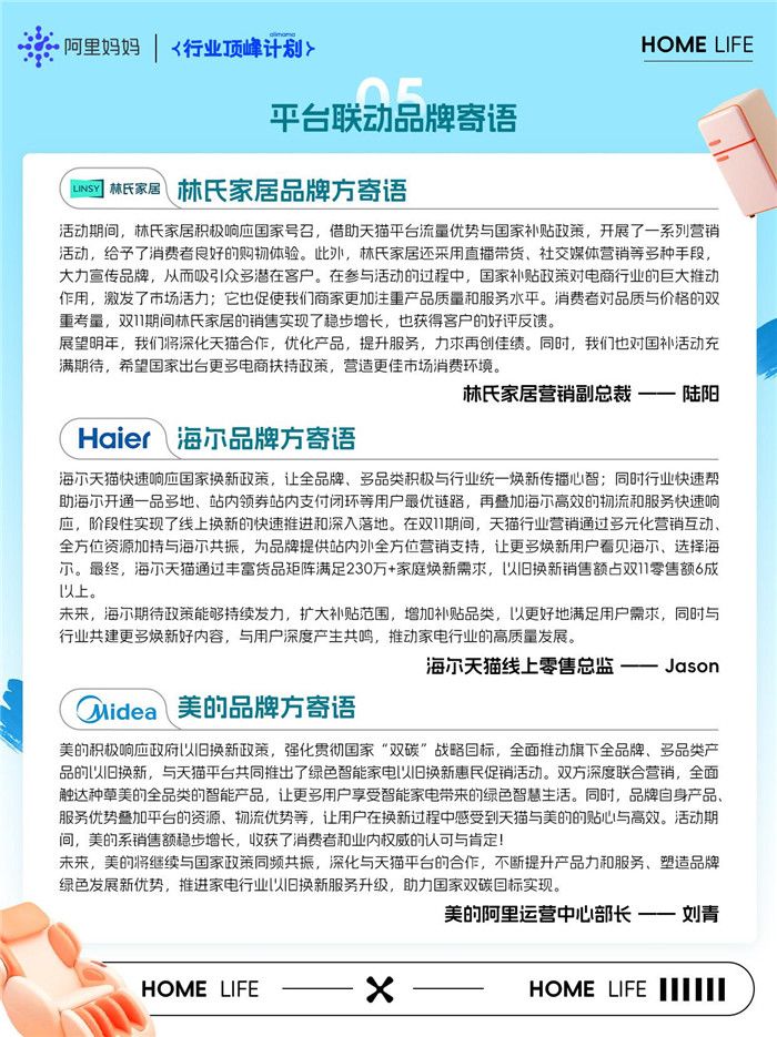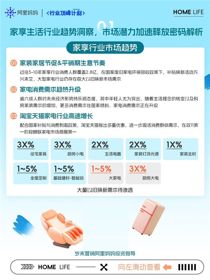 围绕「家享生活行业」市场趋势与需求升级,解码国补政策下家享行业市场机遇,引导商家在岁末前夕提前布局、尽早规划,通过重要品类交叉渗透与场景化组合,在销售窗口期迅速对接消费群体心智。