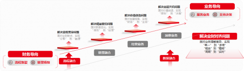 业财融合战略路径是一个从财务导向逐步过渡到业务导向的综合性过程。该路径首先聚焦于解决流程割裂问题,通过整合分散的业务点,实现流程的融合与精细化管理,确保财务流程的高效与准确。随后,进入经营业务阶段,面对价值创造问题,财务与业务紧密合作,实现从“财务”到“业务”的转变,最终,达到业务导向阶段。