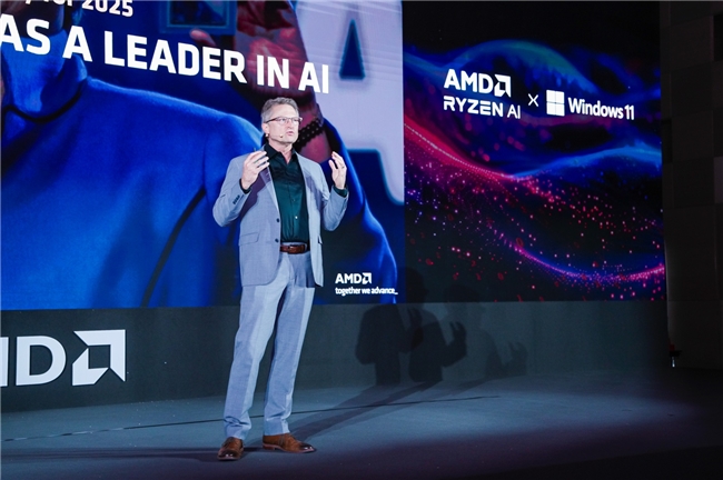AMD全球区域市场营销副总裁Raymond Dumbeck、AMD大中华区市场营销副总裁纪朝晖在 “AMD AI+时代的产品方案与市场策略”的主旨分享中,介绍了AMD公司在品牌和AI产品线的快速成长,在Windows 11 AI+ PC上不仅迅速迭代推出了丰富的产品组合,更是在AI生态应用上持续投入,“高性能、更智能、AI+ PC选锐龙”正逐渐被市场接受。在2025年更是将会有超过100款基于AMD锐龙AI处理器的Windows 11 AI+ PC上市,给用户更加丰富的选择。