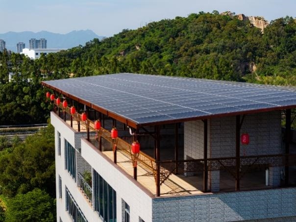 “阳明楼”是兴中村通过租赁形式引入的屋顶光伏产品,农户通过出租闲置屋顶给光伏电站项目获得租金收益,目前该村已有十余户安装。为最大化发电效率,产品采用5°人字坡设计,确保光伏板全年可接收足够光照,实现收益最大化。按屋顶安装105块光伏组件计算,农户在合作期间累计可获得屋顶综合收益近8万元。产品不仅隔热防雨,其设计结合中式建筑风格,也成为“绿化”乡村的一道风景。