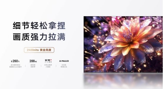 长虹 AI TV:搭载16晶方芯驱动,发光面积比普通Mini LED提升了260%,局部画面的细节把控极为出彩,云帆AI影像大模型可精准调校画质,营造影像真实感。基于AI Mini LED技术实现的AI温控算法和背光温度控制,达到2400nits的峰值亮度,同层级几乎最高;观看时,整体画面纯净清晰,强光下几乎看不到太多光晕。288Hz超高刷屏幕下,游戏帧率也极为舒适。