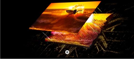 SAMSUNG QNX9D:搭载杜比全声景音效,具有一定空间感;Q交响乐模式增强了声音的细节层次,AI智能控声保证电视原音纯净通透,临场感很强。