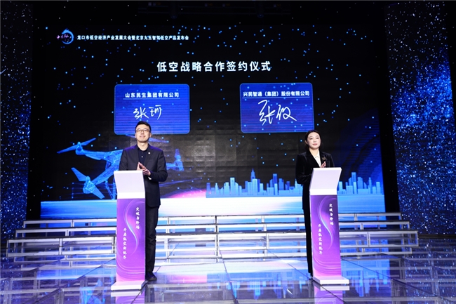 在战略布局方面,兴民智通与山东民生集团签订了低空经济战略合作协议。兴民智通董事长、总经理高赫男与山东民生集团党委书记、董事长于涛见证签约。兴民智通与山东民生集团的合作,不仅为兴民智通和九五智驾带来了强大的资源支持,更为山东省低空经济的多业态多产业的融合发展注入了强劲动力。双方将携手共同推动低空的领先技术和应用场景在山东省的研发与应用,前瞻性地探索更多低空商业发展前景,促进经济新业态健康发展。
