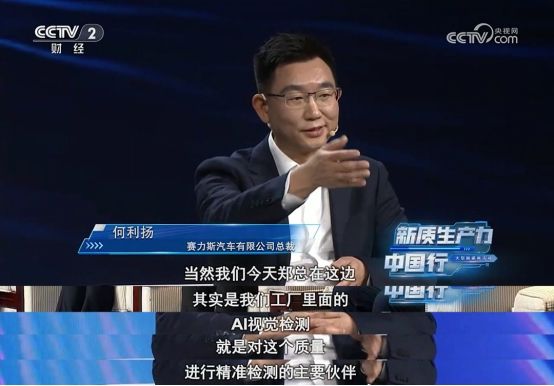 △赛力斯汽车总裁 何利扬 向在场观众介绍了摇橹船科技如何针对新能源汽车产线,通过AI视觉检测系统,赋能问界汽车的生动案例。