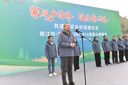 12月22日,江铃·溪桥工程共建美好乡村捐赠仪式暨第452座爱心桥奠基在江西省抚州市资溪县彭田村举行,江铃汽车股份有限公司、中国乡村发展基金会、江西万物生汽车科技有限公司等合作伙伴共同见证。