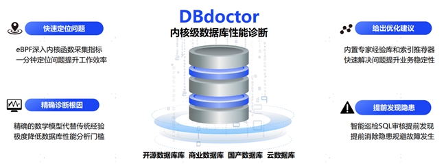 DBdoctor作为一款企业级数据库SQL审核、性能诊断与优化平台,首次将eBPF技术聚焦在数据库领域,创新性实现性能可观测,可一分钟诊断数据库性能问题并给出优化建议。其独家SQL性能审核功能,通过自研外置Cost优化器,可实现覆盖开发、测试、生产的SQL全生命周期管理,精准评估SQL性能,提前规避线上故障发生。行业内首次提出基于数据库内核函数调用分布的AI参数调优,可屏蔽不同业务负载模型差异,无须在用户生产进行反复调参,即可推荐最优参数并提示性能提升效果。除此之外,针对已纳管的20余款国内外主流数据库,按照事件先后顺序,提供事前诊断、实时诊断、实例调优三大类功能。DBdoctor凭借其行业领先的技术优势,深入数据库内核,实时海量数据分析,提供精准的诊断分析和优化建议,已帮助众多用户快速解决数据库性能问题。