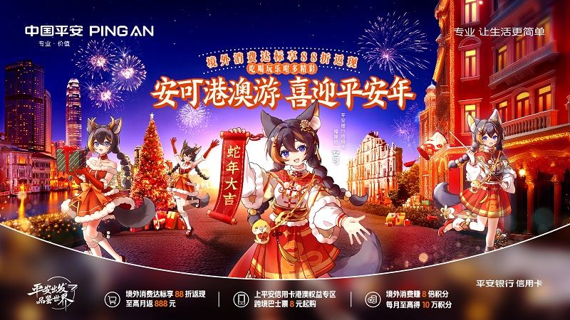 日前,平安银行信用卡推出“安可港澳游,喜迎平安年”境外支付优惠活动,由品牌数字化虚拟IP—安可担任“福狸官”全程陪伴用户。作为“平安出发,品鉴世界”系列活动的重磅内容,此次活动包含线下消费达标88折返现、8倍积分奖励等优惠,并特别推出港澳权益专区、以“省心、省时、又省钱”的金融服务促进跨年消费,助力粤港澳消费融合。