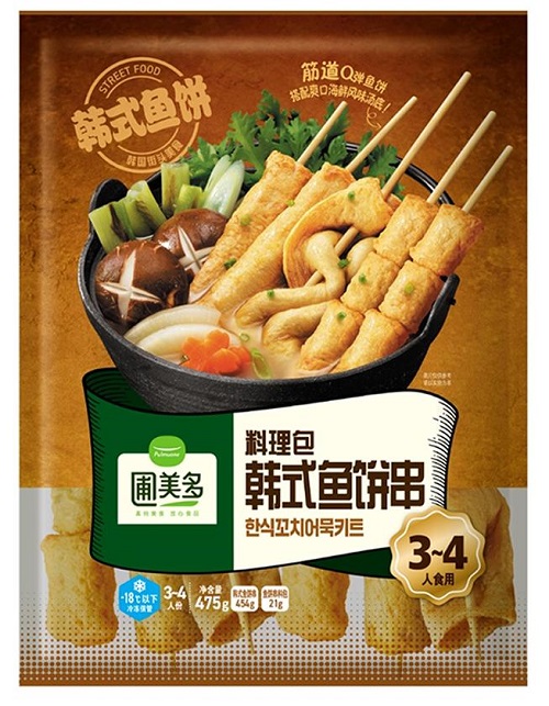 圃美多的韩式鱼饼串,棒形鱼饼鱼糜含量≥78%, 方形鱼饼和蔬菜鱼饼鱼糜含量≥63%,筋道Q弹,鲜味十足。产品包含韩式方形,棒形及蔬菜鱼饼三种经典款式。汤料包以鲣鱼和蔬菜等熬制而成,带有清淡爽口的海鲜风味,呈现出经典韩式口感。这些食材采用零下40°C急速冷冻工艺,牢牢锁住食材原始鲜味。