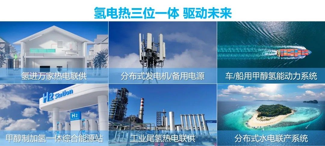 全力打造围绕高温膜燃料电池技术为核心的分布式综合智慧能源微网现场氢源即产即用,实现高效热电联产,在基站电源、分布式电源、车(船)载增程电源、移动式和固定电站、分布式热(水)电联供、零碳产业园等民用与军事领域具有极为广泛的应用前景。
