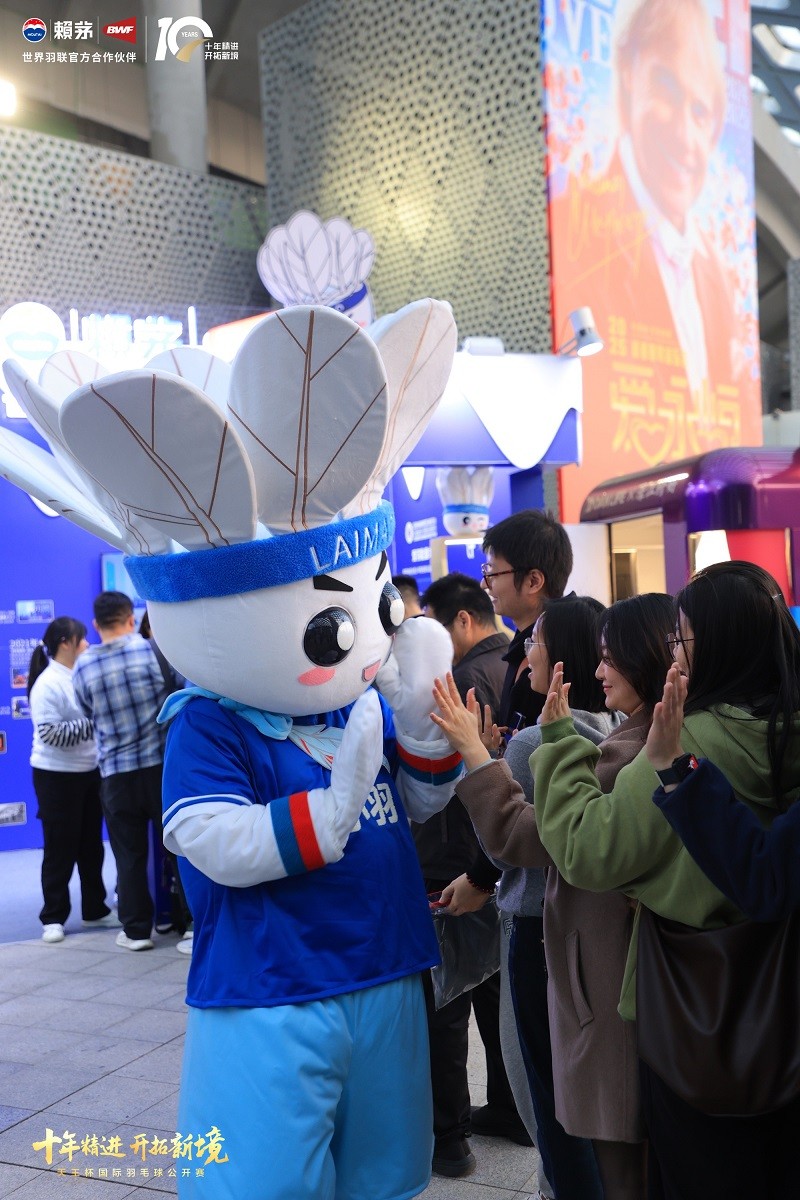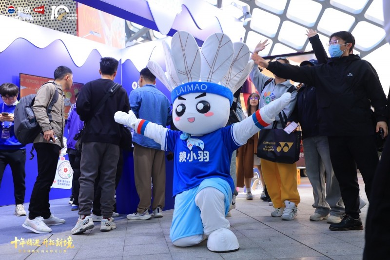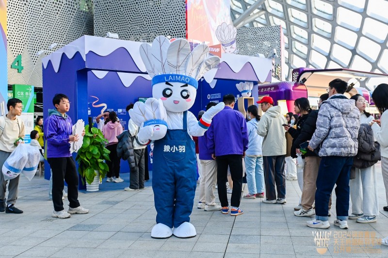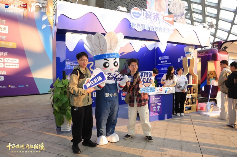 赖茅IP形象“赖小羽”以展位运营人员的身份亮相天王杯嘉年华区域,凭借其萌趣可爱的外形和幽默风趣的互动风格,迅速成为现场观众的“团宠”。