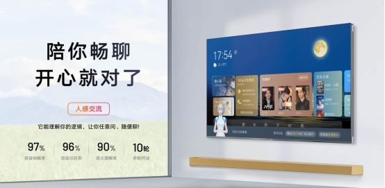 AI重塑了智能的上限,电视成了最好的载体。高端智能电视会基于大模型,打造一个专属超级智能体,因为具备深度学习、语义理解等能力,在搭配接近真实人声的音色、语气后,极大消除了人机互动的生硬感,让沟通像人与人聊天一般舒适自然。更神奇的是,它还能对我们提出的问题像真人一样进行逻辑推理,并建立与任务相关的长时记忆。随着累积的知识越来越丰富,它也会不断自我学习,进化,变得越来越聪明。