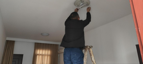 维修人员为孔垄所部的员工宿舍更换灯具 蔡环泽/摄