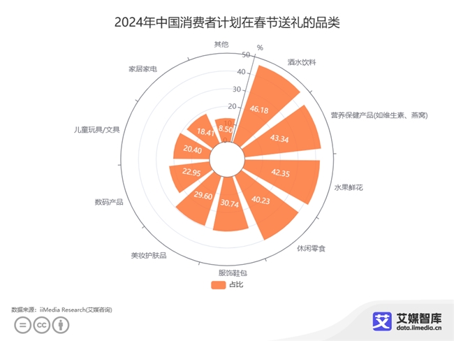 与此同时,随着人们对春节仪式感的愈加重视和送礼需求的不断增长,中国新春礼品行业正迎来新的发展机遇。艾媒咨询数据显示,近年春节礼品市场稳定增长,行业复合增长率达7%。数据还显示,在中国消费者春节送礼计划中,90.98%消费者会选择送礼。而送礼的品类,46.18%的消费者选择酒水饮料。