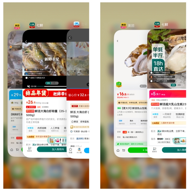 京东七鲜鲜活大海白虾从山东滨州养殖基地源头直采,水域纯净,品质有保证,击穿价仅售26.9元一斤。美团小象价格为29.9元,盒马价格32.8元,都比京东七鲜贵出10%还多。鲜活超大乳山生蚝,京东七鲜秒杀价5.9元一只,美团小象16.8元一只,比京东七鲜贵了近三倍。