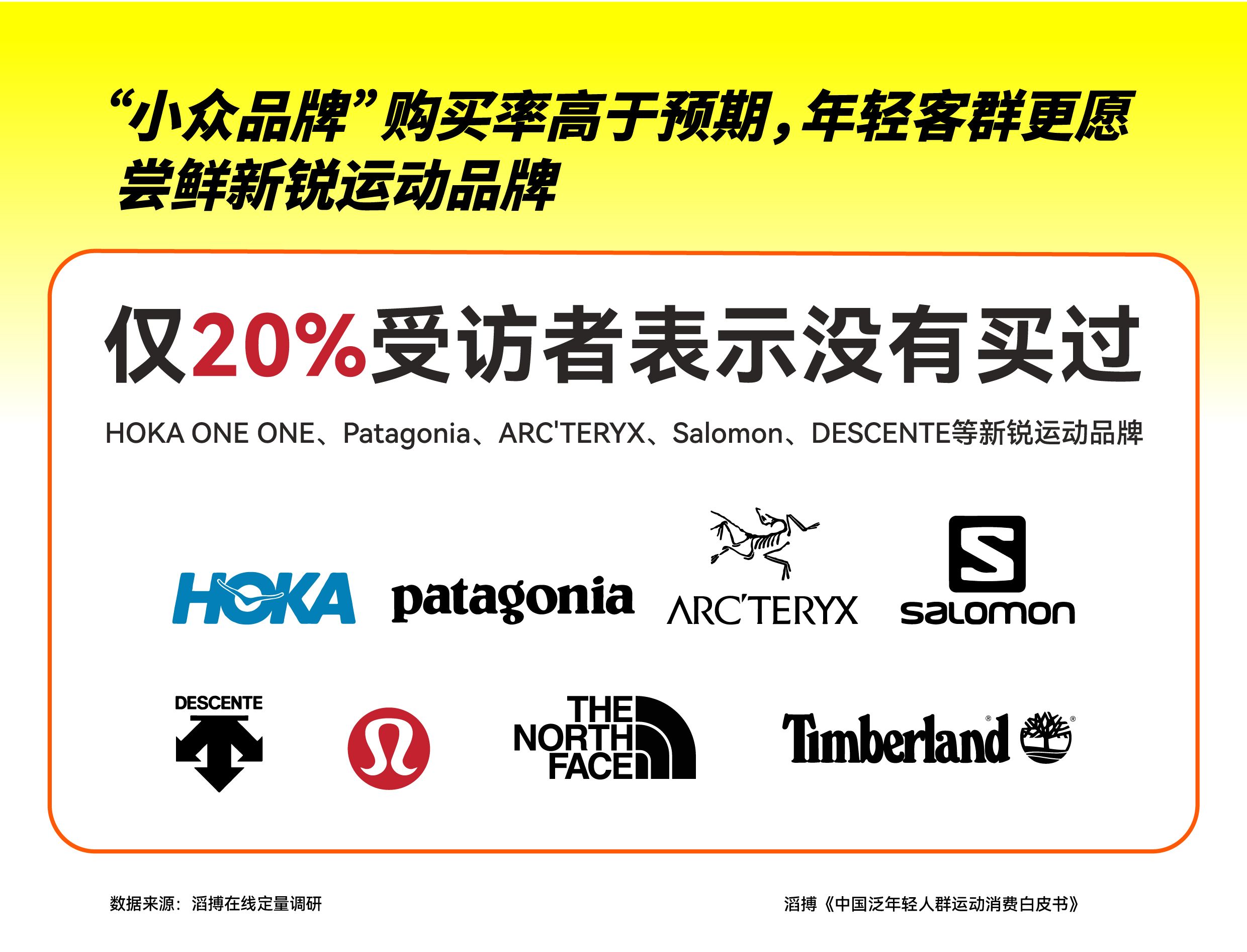 HOKA、Patagonia、ARC'TERYX等“小众”品牌正获得越来越多年轻人的青睐,仅20%的受访者表示未购买过此类品牌。在年轻人购买的新锐品牌中,The North Face排名最高,其次是HOKA和Timberland。男性消费者更偏好ARC'TERYX,女性则对lululemon情有独钟。
