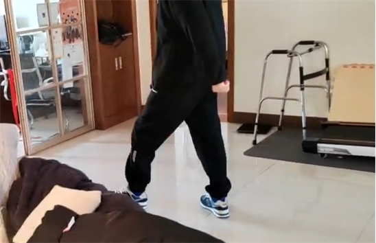 手术后一个月,患者在家中主动给医生发来录像,分享他步态改善的快乐。