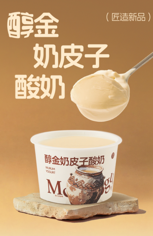醇金奶皮子酸奶是茉酸奶继有机酸奶脆墩墩之后的又一零售力作,标志着品牌在产品线创新和多样化上迈出的大胆步伐,展现了其在零售产品领域以高品质为核心的持续探索。