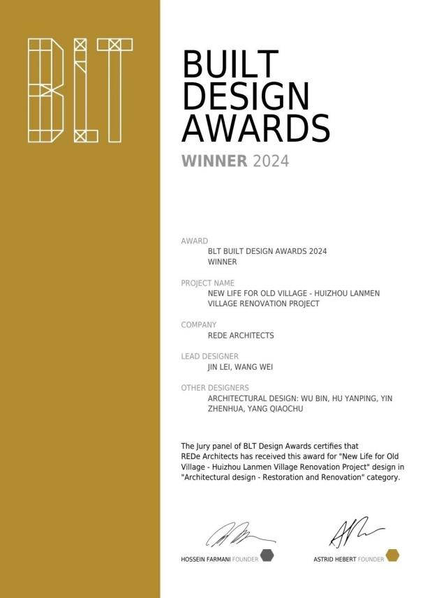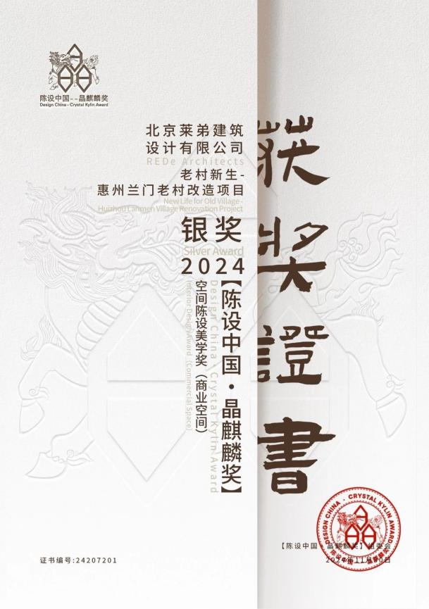 在2024年的尾声,泰康保险集团助力乡村振兴的兰门田园康养项目先后两次迎来了荣耀时刻。国际上,兰门老村改造项目荣获2024瑞士BLT建筑设计大奖;在国内,兰门老村改造项目荣获【陈设中国·晶麒麟】2024【空间陈设美学】(商业空间组)银奖,这两项殊荣不仅是对兰门村设计美学的肯定,更是对泰康在乡村振兴领域不懈探索与创新的见证。