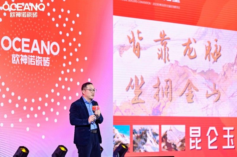 年会开场,欧神诺瓷砖董事长兼总裁吴志雄以一段铿锵有力的演讲奠定了此次会议的主基调。吴董首先回顾了2024年欧神诺取得的成就,重点提及中国玉IP的成功打造对品牌发展的直接推动作用,以及秋季新品中国玉2.0和行业首创800×1350mm规格对欧神诺人士气的鼓舞。