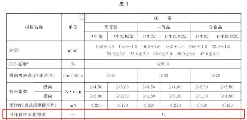 GB/T 20810-2018《卫生纸》国家标准对可迁移荧光物质的要求