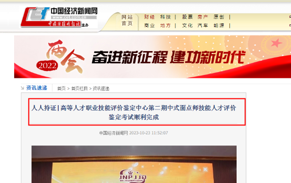 中国经济新闻网报道了人人持证|高等人才职业技能评价鉴定中心第二期中式面点师技能人才评价鉴定考试顺利完成