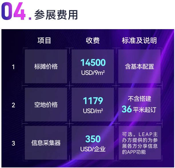 LEAP是沙特通信与信息技术委员会(COMCEC)主办的国际性展会。展示内容为通信技术、信息技术和数字化解决方案的最新发展趋势和创新成果。该展览吸引了来自全球各地的政府、企业、研究机构和专家参与,共同探讨数字经济的发展趋势和未来方向。
