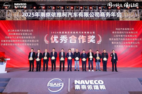 1月9日,在2025年南京依维柯汽车有限公司商务年会上,新吉奥集团凭借旗下房车板块的卓越产品品质与深度合作关系,荣获“2024年度优秀合作奖”,成为年会上的一大亮点。