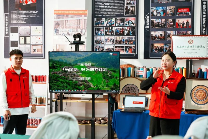 不仅如此,京东超市还为当地妈妈群体开展电商技能培训,助力妈妈们制作的彝族刺绣、藏族唐卡、水族马尾绣等工艺品实现数字化销售,帮助她们增加收入,减轻家庭负担。