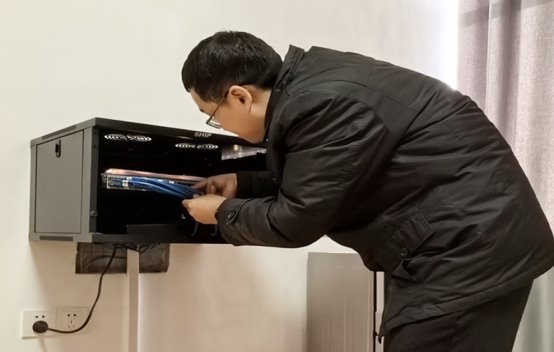 图2 工作人员正在检查网络线路(李永生/摄)
