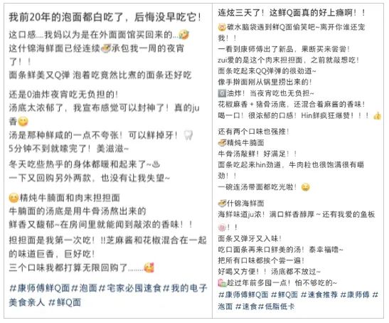 线下推广加持下,鲜Q面的线上热度也持续攀升,KOL和网友的试吃测评、反馈种草,引发了更多消费者的热烈讨论和尝鲜好奇。“看着就好香”、“下次我也试试”……一套营销组合拳之下,下一波潜在消费者也已经在路上。