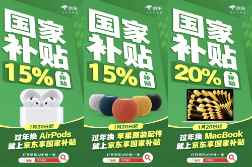 1月20日,国家补贴再加码,手机等数码产品购新补贴落地京东,京东也正式上线了“苹果国家补贴”会场。消费者在京东购买单件价格不超过6000元的iPhone、iPad、Apple Watch、AirPods、苹果配件等Apple产品,即可享受政府15%的补贴,每件补贴不超过500元。只需打开京东APP搜索“苹果国补”,即可一键直达活动页面,省钱省心地将心仪的 Apple 产品带回家。