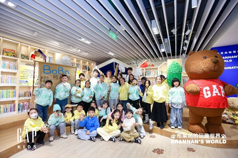 作为GAP的经典IP形象,布莱纳小熊(Brannan Bear)自2000年首次亮相于婴童装广告中以来,便以其张开怀抱的可爱形象赢得了无数家庭的喜爱。为致敬GAP位于旧金山布莱纳街的总部,这只小熊在2004年被正式命名为“布莱纳”,并逐渐成为GAP童装舒适、安全、趣味的代名词。如今,布莱纳小熊更是化身为“玩趣大使”,带领来宾们开启了一场充满欢笑与惊喜的奇妙旅程。