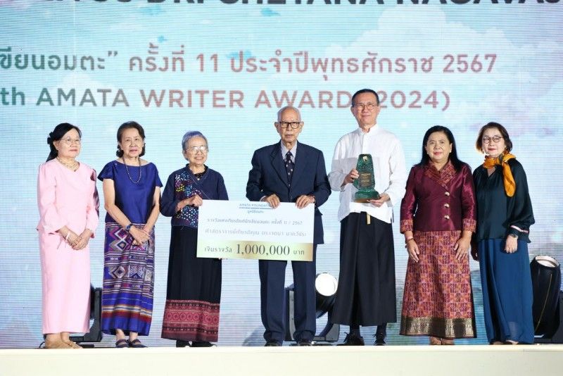 在当天的活动现场,还举行了安美德作家奖颁奖仪式。作为安美德基金会的一项重要活动,每届安美德作家奖都会固定挑选一名对社会有贡献的年长作家,发放100万泰铢作为奖励。邱威功先生表示,年长的作家现在很少被社会看到了,他们的作品是艺术,一直在创造社会价值。安美德基金会也将持续为好人提供支持。
