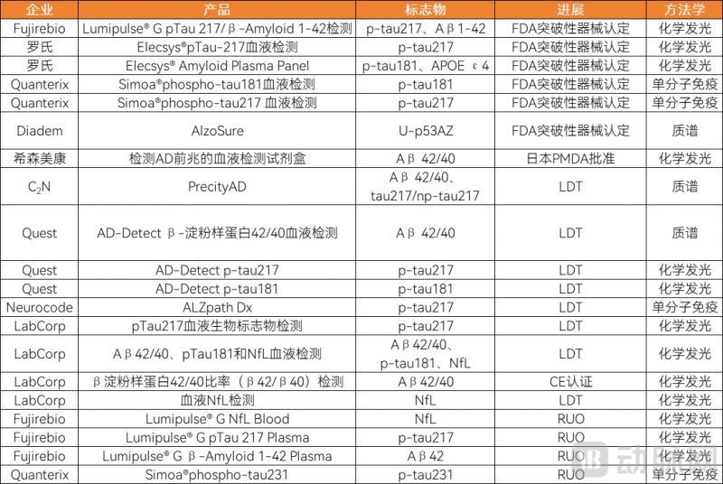 FDA已批准两家企业的AD脑脊液检测试剂盒,均是采用化学发光法。