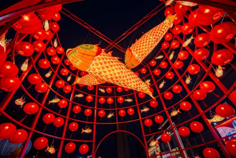 ▷ 滁州天长吾悦广场以“红韵悦梦”为主题,将火红的灯笼和非遗鱼灯相结合,以游园灯会、鱼灯巡游等形式,打造极富徽州传统文化韵味的新春场景。
