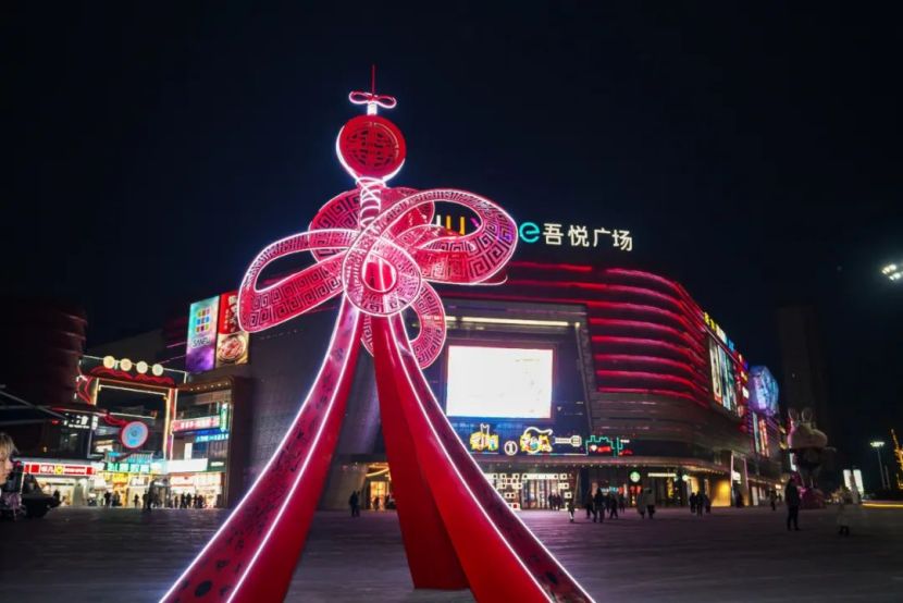 ▷ 淮南吾悦广场以象征着团结、幸福和平安的中国结为原型打造大型艺术装置,呈现别样的东方美学。