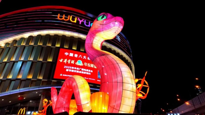 ▷ 合肥肥东吾悦广场的“金蛇花灯”象征着金蟒盘福,华灯映春,以一场视觉盛宴,邀您共赴新春之约。