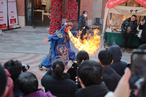 过年,自然少不了各色年俗活动。培仁历史文化街新春好物市集、乐烧及变脸表演、NPC巡游、集印章换徽章、互动小游戏等融合传统民俗与现代创意的多彩活动,为游客带来别样的节日休闲体验。焕新亮相的山里各庄乡愁作坊街里,古色古香的建筑群和热烈浓郁的新春氛围相映成趣,饹馇盒、冰糖葫芦、烧麦、粘豆包、山楂糕等各种美食和剪纸、泥人、石头画、木雕等非遗文创琳琅满目,更有秧歌游街等民俗文化展演的喜庆热闹,让游客沉浸式感受浓浓的年味和人间烟火气。在青山关景区,五路财神身着传统华服,在街巷间传递着祥瑞与祝福。手中的福带随风轻扬,似在诉说着对游客们的美好祝愿。游客们接过福带,脸上洋溢着幸福的笑容,祈愿将新一年的好运都握在手中。