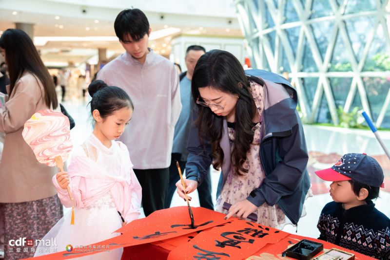 大年初一到初七,cdf三亚国际免税城设立五大非遗手作体验区,涵盖书法、糖画、剪纸、漆扇、拓印。春联书写台前,游客排队等待挥毫泼墨,书写定制版新春祝福;糖画摊位前,手艺人用糖浆勾勒出生肖蛇造型,引发围观与体验热潮。据统计,非遗体验区每日人流络绎不绝,家庭客群占比达七成,充分展现了传统文化的吸引力。