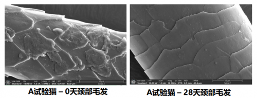 在科学实证、严控品质的标准下,Solid Gold素力高与浙江大学教学动物医院联合发起28天素力高奶盖鱼油的饲喂效果跟踪实验。实验通过浙大教学动物医院官方平台发起招募,吸引了来自江浙沪近30位养宠者报名参与,经过筛选,最终20只猫咪参与实验。参与猫咪分别在喂食第1天和28天参与体检,在专业的显微镜检与医生感官检测下,评估喂食奶盖鱼油28天后的毛发状况改变。通过28天喂养效果对比,实验证明100%受试猫咪的毛发得到不同程度改善,掉毛量显著减少3倍,猫咪毛发的柔顺度、强韧度均得到明显改善,宠物拥有更加健康柔顺的毛发。