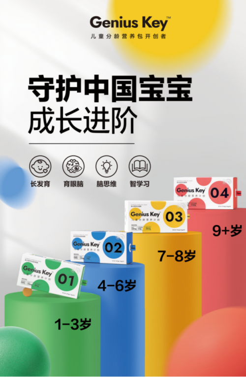 在追求儿童健康成长的道路上,平衡膳食与合理营养始终是基石。随着科学孕育和精致养育理念的日益深入人心,越来越多的母婴家庭开始关注营养消费的精细化和科学化。在此背景下,母婴平台宝宝树旗下品牌Genius Key发布了儿童分龄营养计划,这一计划针对中国儿童提出了创新的1+、4+、7+、9+四段分龄营养补充方案。