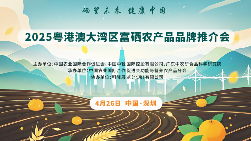 2025年粤港澳大湾区富硒农产品品牌推介会由中国农业国际合作促进会、中国中轻国际控股有限公司、广东中农研食品科学研究院联合主办,科隆展览(北京)有限公司协办。推介会将于展会同期重磅发布“中国富硒农产品地图”,并公布全国富硒农产品产区进入粤港澳大湾区销售的优秀品牌调查结果。活动将广泛邀请行业嘉宾、专家、全国各富硒产区主管部门负责人、企业负责人,以及采购商、经销商、代理商负责人等齐聚一堂,共同开展富硒农产品的品牌及产品推介活动,助力产品发展与品牌建设。