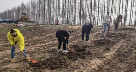 活动当日,阳光明媚,春风和煦。活动现场,青年志愿者们热情高涨、干劲十足,纷纷化身为“绿色使者”。大家两三人一组,分工协作,配合默契,有的挥锹铲土,有的扶苗填坑,还有的提水浇灌,每一个环节都认真细致,有条不紊。现场欢声笑语不断,大家一边享受着植树的乐趣,一边交流着生活和工作中的点滴,气氛十分融洽。经过志愿者的辛勤劳作,紫薇、香樟、红枫等树苗在土地上“安家落户”,整齐排列,展现出蓬勃的生机。
